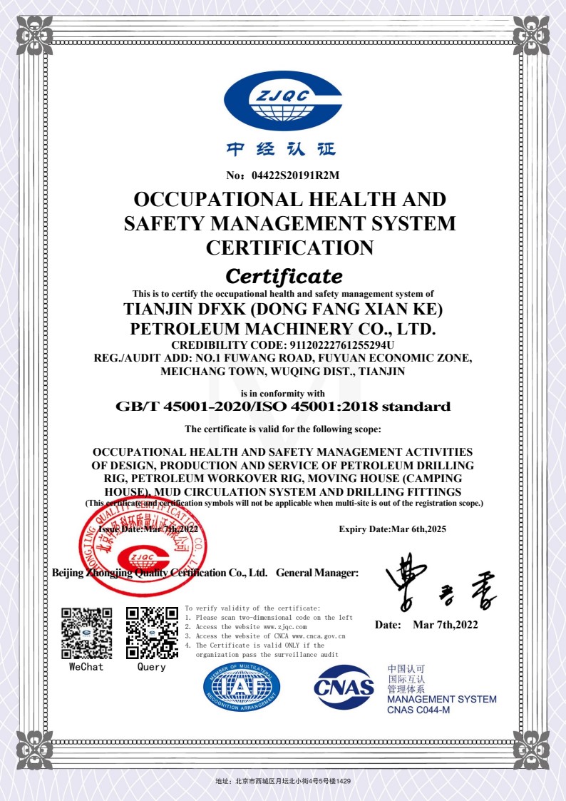 職業(yè)健康安全管理體系認(rèn)證證書(shū)英文