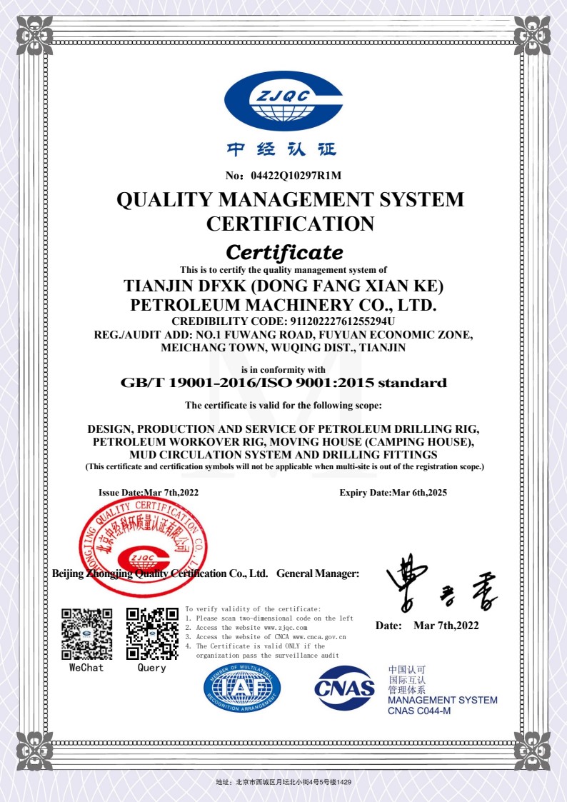 質(zhì)量管理體系認(rèn)證證書(shū)英文