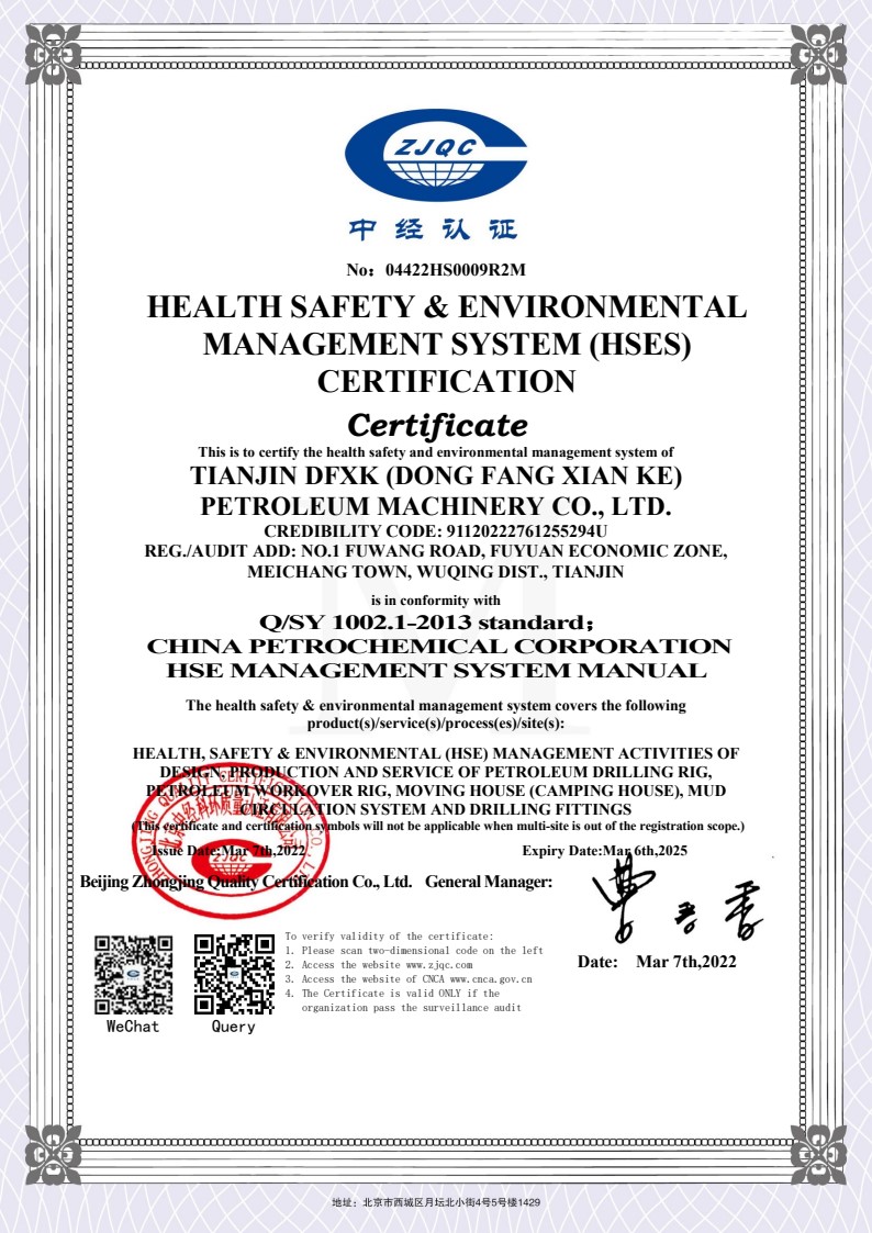健康、安全與環(huán)境管理體系認(rèn)證證書(shū)