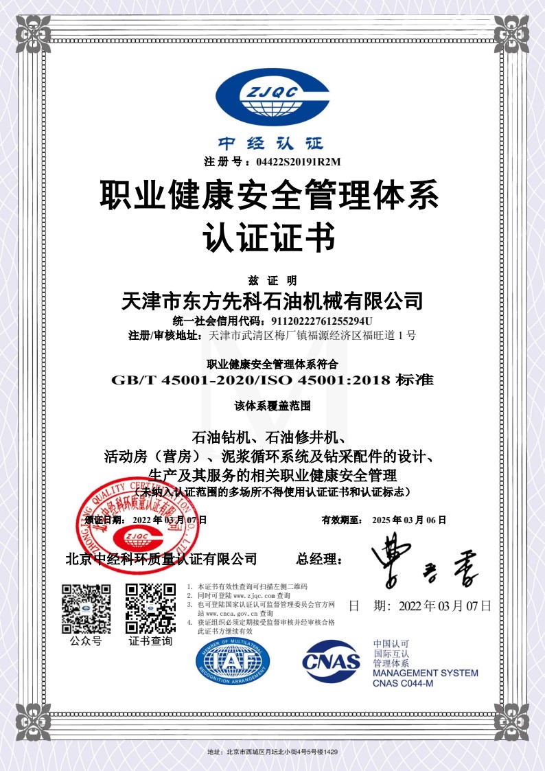 職業(yè)健康安全管理體系認(rèn)證證書(shū)