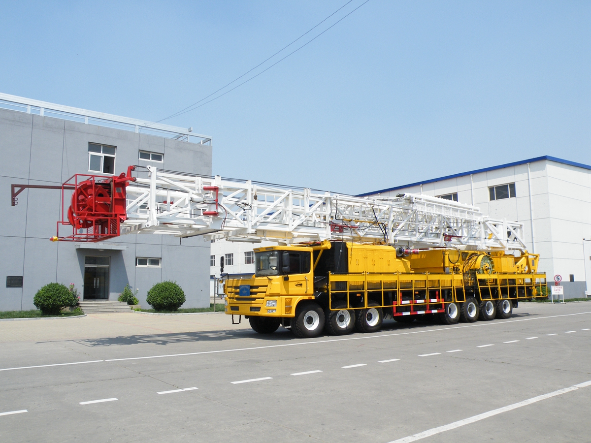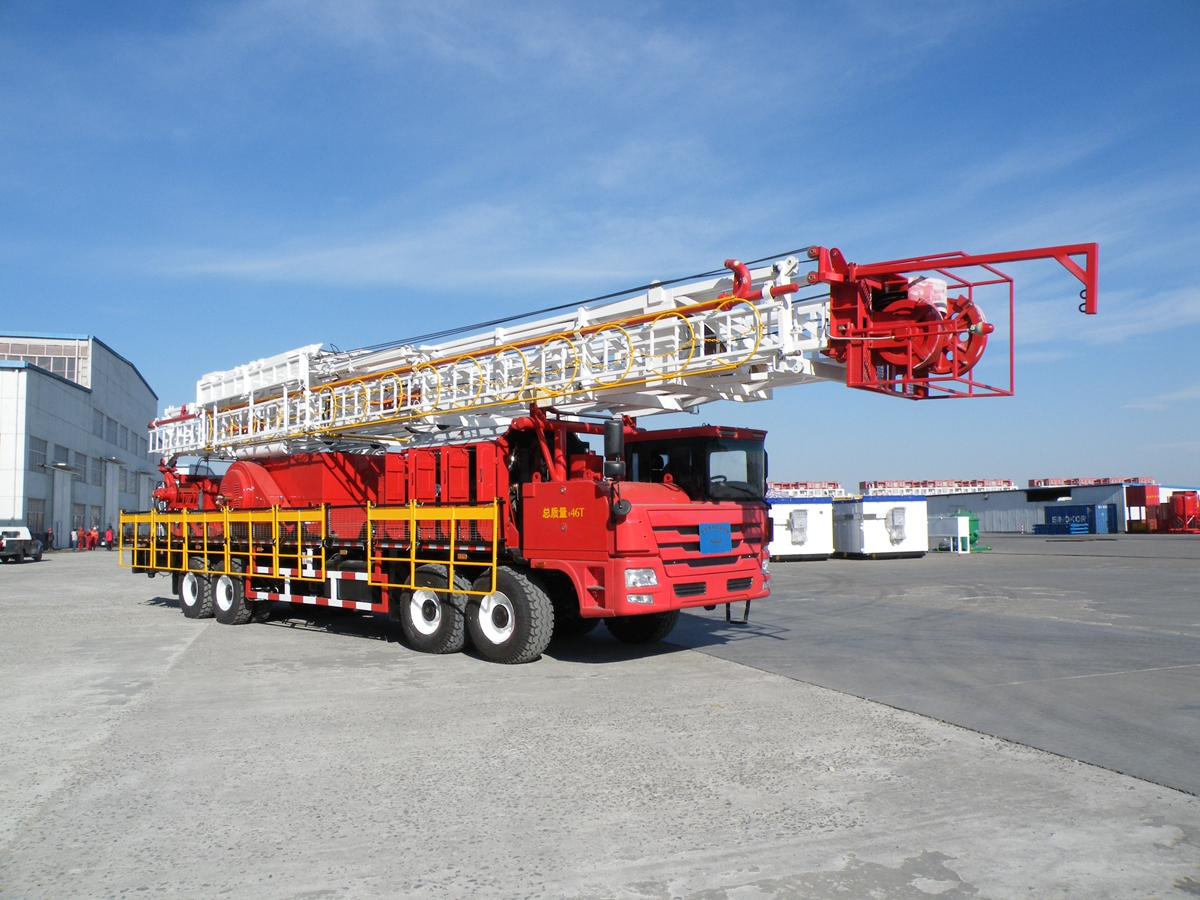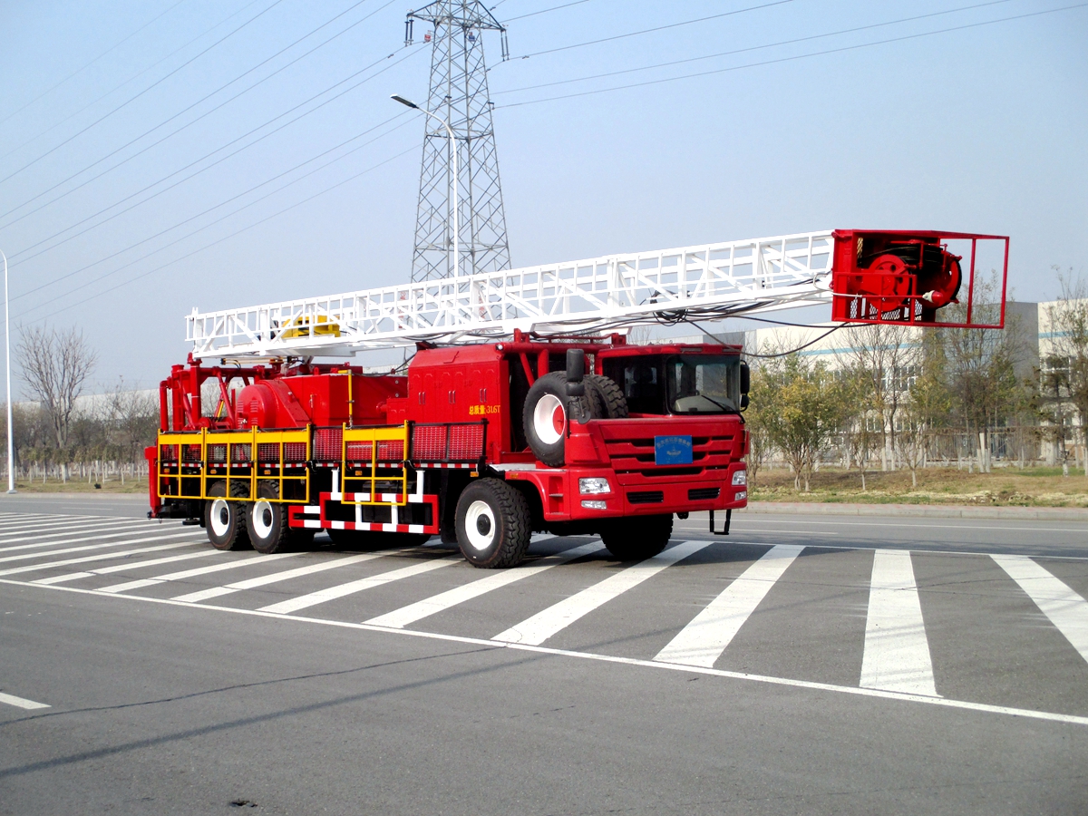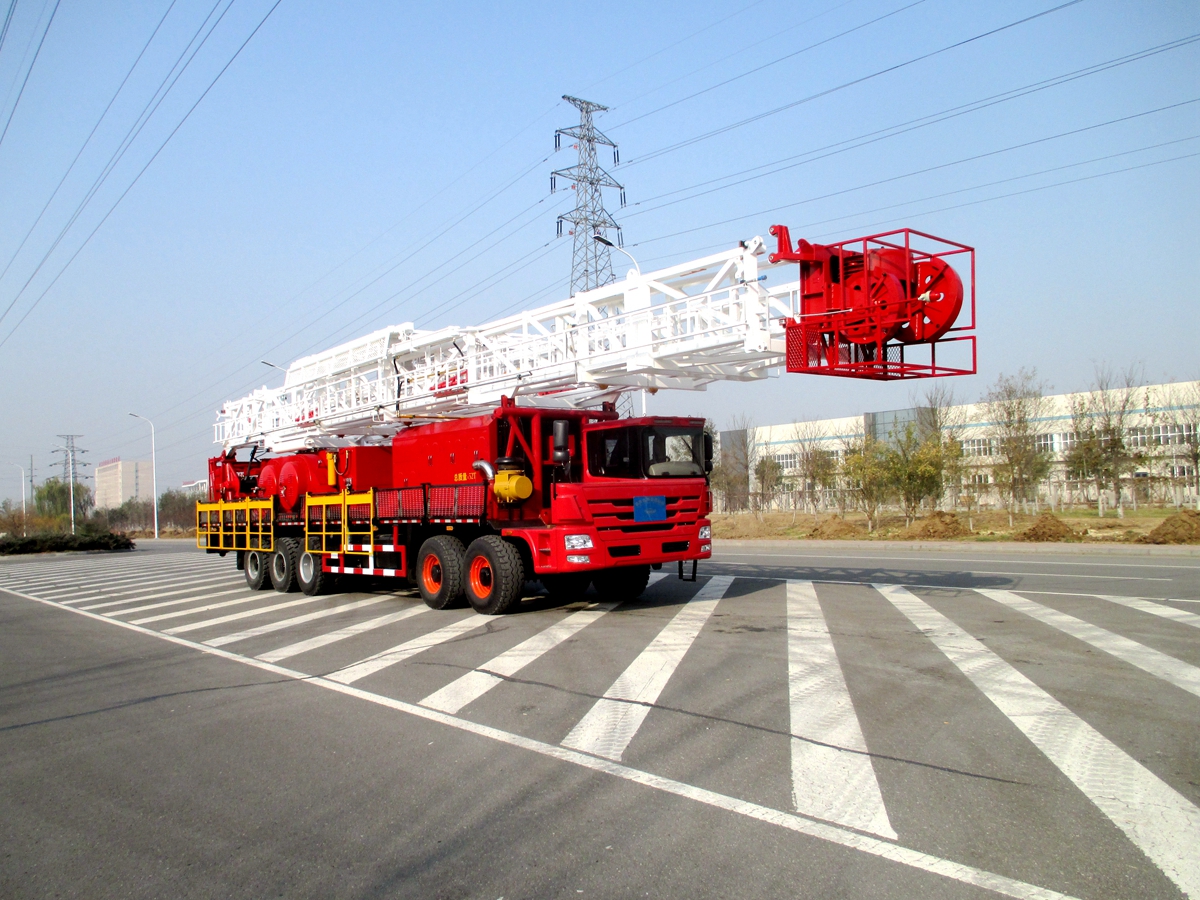 車裝修井機(jī)是將動(dòng)力系統(tǒng)、絞車、井架、游車系統(tǒng)及傳動(dòng)系統(tǒng)等部件安裝于自走式底盤上。整機(jī)具有結(jié)構(gòu)緊湊,集成度高,占地面積小,移運(yùn)快捷,搬遷效率高等特點(diǎn)。